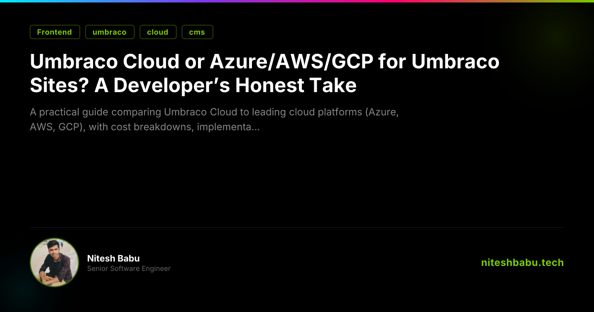 If you want a recommendation tailored to your traffic, content model, and governance needs, I’m happy to map out a plan, whether that points you to Cloud or a general cloud with the right guardrails. Please reach out to me at hello@niteshbabu.tech.